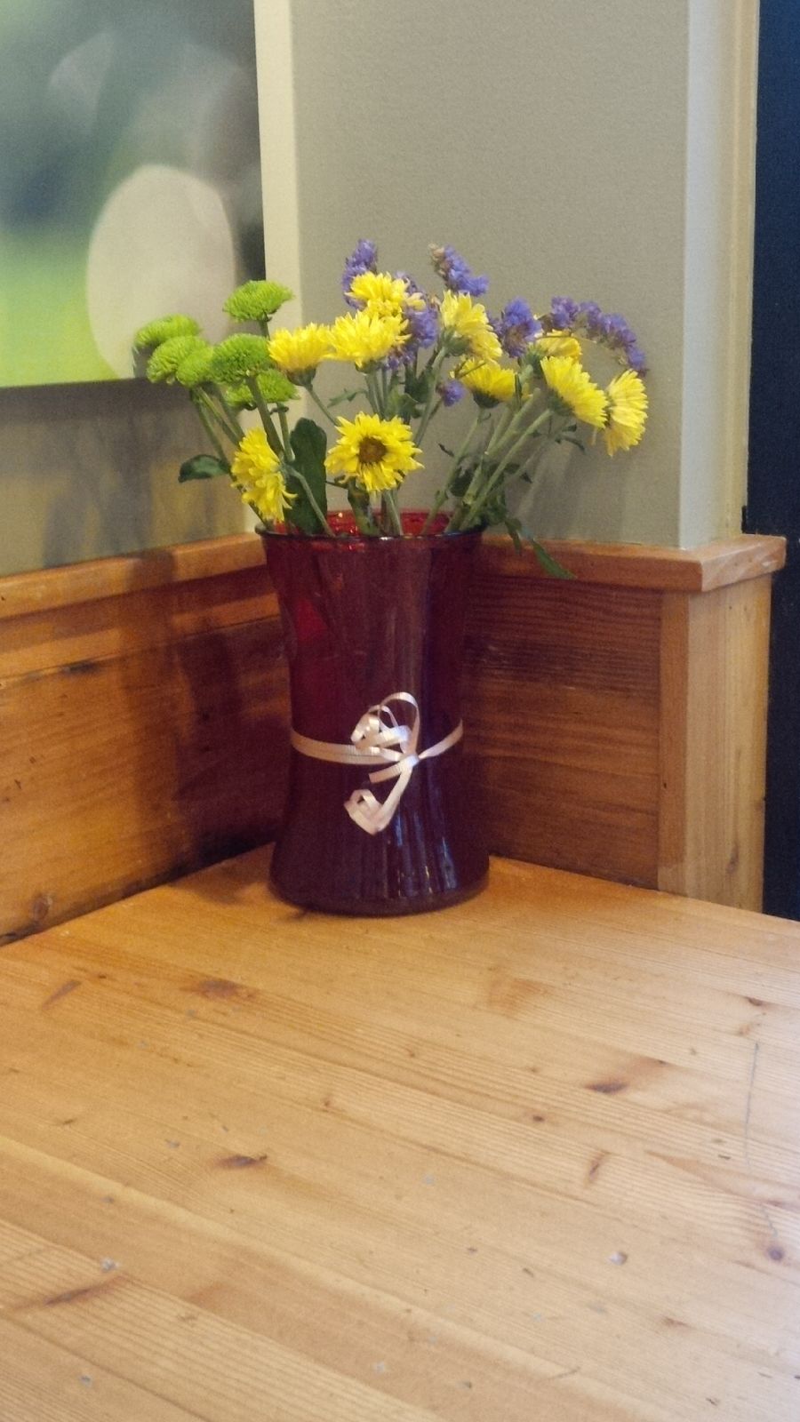 I yelled, stomped and packed up my crap. If I had a little more disposable income I would have checked into a hotel for the weekend because I don’t think that I have ever felt more like running away. But the coffee shop is going to have to cut it. When I got settled into my regular spot I noticed that someone had put some flowers in the corner which was a really nice surprise. Sometime’s it’s the little things that matter.