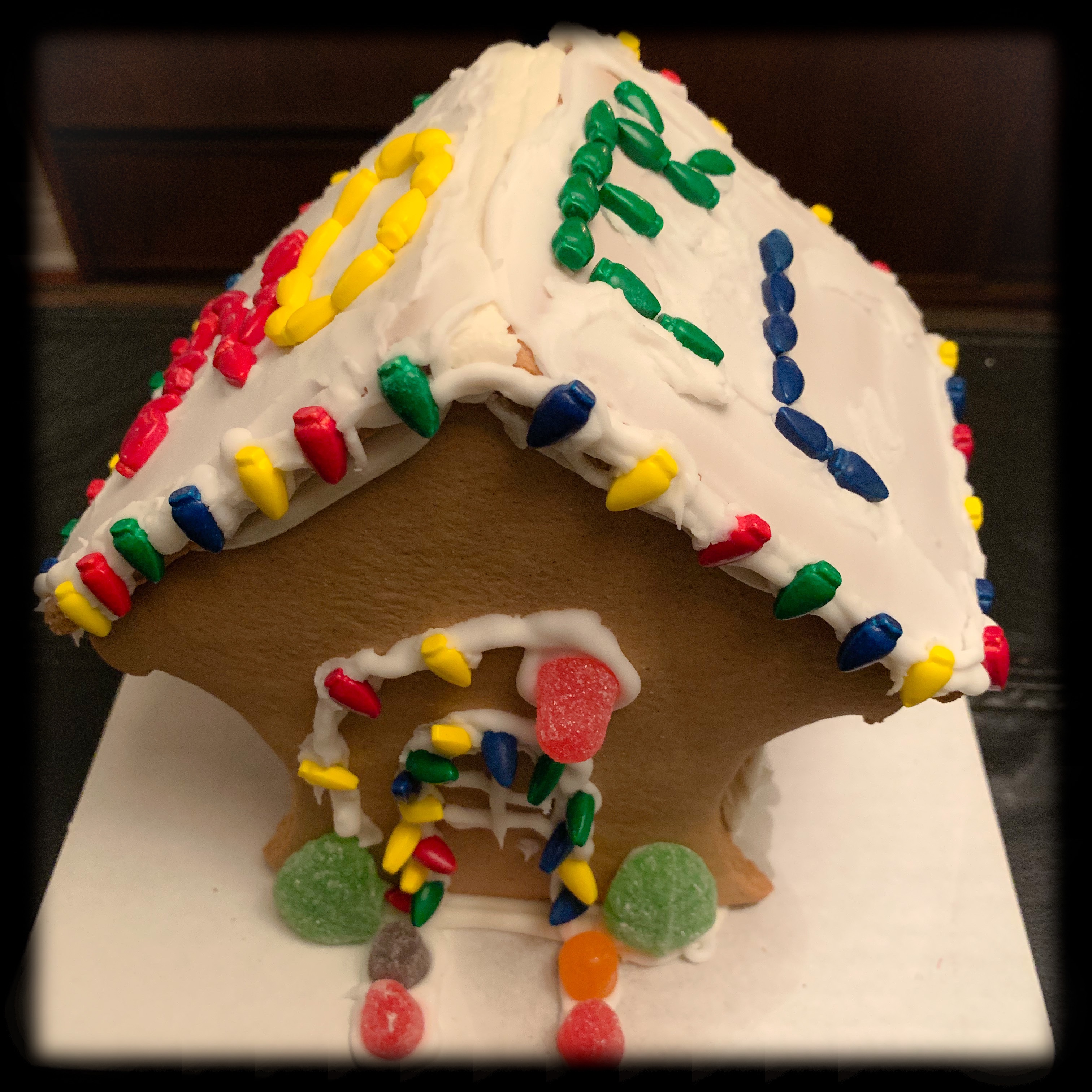 I was crafting with the kids today. We made gingerbread houses. We usually make one together but I decided this year to get them each one.